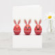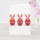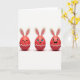 This design shows three red, egg-shaped characters standing side by side on a bright white background, each topped with long cream ears with soft pink centers like a spring bunny 🐰. Gentle lighting creates a glossy shine on their rounded surfaces, and faint shadows beneath them make them feel close enough to reach out to one another. The left figure wears a calm, closed-eye smile, leaning slightly toward the middle as if sharing a quiet, affectionate moment. The center figure looks forward with wide eyes, a small tooth showing in a teasing grin, and fine lashes that give it a flirty, friendly charm 🐇. The right figure laughs with an open mouth and bright blue eyes, angled as though reacting to the center one’s joke. Near the bottom of each red shape, a white zigzag band wraps across like a cracked shell detail, tying the trio together with a shared, cozy rhythm. There is no text on the front, leaving the crisp white space to frame the trio and their cream-and-pink ears.