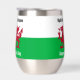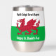 Celebrate Saint David's Day with this elegant, bold, and bright March 1st stainless steel stemless wine tumbler, which features the iconic Welsh red dragon on the green and white of the Welsh national flag. Reverse shows identical design.