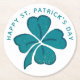 Happy St. Patrick`s Day Green Shamrock Clover Round Paper Coaster