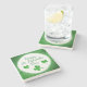 Happy St. Patrick`s Day Irish Green Shamrock marble stone coaster. A Happy St. Patrick`s Day text with green Irish shamrocks for luck. Clovers with four leaves. You can change the text. The background is a green abstract pattern.