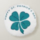 Happy St. Patrick`s Day Shamrock Clover Round Pillow. A Happy St. Patrick`s Day text with Irish shamrock for luck. Clover has four leaves. You can change the text.