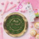 Happy St. Patrick Shamrock Gold Look Clovers on Green Background Irish Pattern Elegant Party Paper Plates for St. Patrick's Day