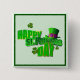 Square button with “Happy St. Patrick’s Day” printed in big green letters with a green leprechaun’s hat with a purple hat band, and shamrocks here and there on light green. Green border. See the entire St. Patrick's Day Buttons & Pins collection in the PARTY FAVORS section.