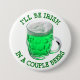 Ill be Irish in a couple beers. Funny St Patricks Day green beer humour button.