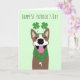Brown dog with St. Patrick's day attire. Kiss Me I'm Irish.