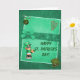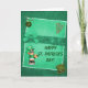 A cute Saint Patrick's Day greeting card for your favourite Irish holiday. It features a cute leprechaun with a pot of gold, a golden harp, green top hat with shamrock - all set against a green background, naturally!