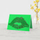 Green/multi coloured kiss on green back round card. Happy St. Patrick's Day inside.