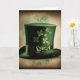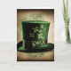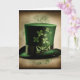 St. Patrick's Day card with a top hat and lucky four leaf clovers. This is a folded card. The inside says: Happy St. Patrick's Day.