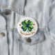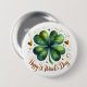 Display your Irish pride with this fun St Patrick's Day button that features a watercolor-style illustration of a four-leaf clover with the text ‘Happy St. Patrick’s Day’ in a gold cursive lettering.