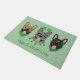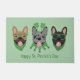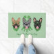 Illustration of three French Bulldog puppies of different colours dressed in St. Patrick Day attire.