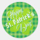 Happy St. Patrick's Day Green Tartan Lucky Clover Classic Round Sticker