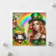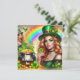 Happy St Patrick's Day Holiday Card with Women Leprechauns, Clovers, Pot of Gold, Gold Coins and a Rainbow