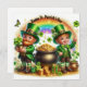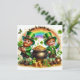 Happy St Patrick's Day Holiday Card with Leprechauns, Clovers, Pots of Gold, Flowers, Clovers, Butterflies and a Rainbow