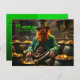 Cute Leprchaun in a cave with gold (illustration by AI - model n°3). Design on holiday postcard with Irish quote and greeting to personalise in the back.