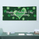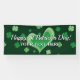 Happy St. Patrick's Day party banner with clovers. Add your own custom text. Cheerful design with script typography template. Personalised decorations for festive party. Great for office, work, school, home, business etc. Green shamrocks with big heart. Irish pride design. Hang this sign up anywhere.
