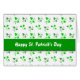 A St. Patrick's Day card with a shamrock pattern in Irish greens with three-leaved clovers. Click Customise It to add your name or message.