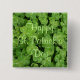 Button featuring green shamrocks background with the words "Happy St. Patrick's Day"