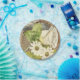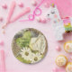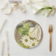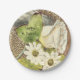 Happy St. Patrick's Day white flowers with green foliage on burlap and wood plates. Artistic, floral, modern and trendy fine art photography party supplies. Look for matching products in my store collection. Image copyright Marg Seregelyi Photography