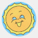 A cute summer sticker with a happy sunshine face with big blue eyes and a big cheery grin.