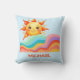 Brighten up any nursery with this cheerful and vibrant summer-themed baby pillow. The design features a friendly smiling sun rising over a series of colorful, flowing rainbow waves against a soft blue background. This cozy accessory is an ideal addition to a modern boho nursery or a thoughtful gift for a toddler's birthday.