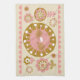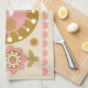 Scandi, folk art inspired, tea towel design. Featuring a happy sun with floral motifs.