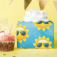 Cute smiling sun with aviator sunglasses on blue sky background with clouds.