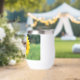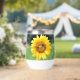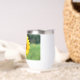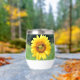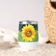 This custom thermal tumbler is designed with a unique image of a "smiling" Sunflower, courtesy of a well-timed visit by a pair of bees. The tumbler holds 11 ounces, is made of stainless steel, and is double insulated to maintain your drink at a soothingly hot or refreshingly cold temperature. The stemless design makes for incredible durability and ease of use as it fits flawlessly in your hand. It has a secure-fitting, leak-proof lid for worry-free transportation, making it the perfect companion for picnics, outdoor gatherings, or simply lounging in the comfort of your own home. Feel free to contact me through Zazzle if you have questions about this tumbler or would like help transferring this image to a different item. I'm happy to help to ensure the image fits correctly.