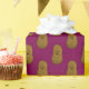 Funny food wrapping paper. A repeat pattern of a cute happy cartoon brown potato with a big smile on his face on a background colour of wine red.