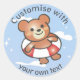 Adorable smiley teddy on holiday. Custom text stickers great for kids pool parties and holiday clubs.