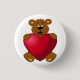 Happy teddybear with heart cartoon 3 cm round badge