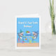 Make a splash with this jaw-some 10th birthday card! A cheerful baby shark takes a playful bite out of a vibrant number "10" perched on a bright ocean birthday cake. Two grinning sharks balance the cake on a surfboard-style stand, all set in a whimsical underwater scene filled with playful bubbles and cute sea creatures like a smiling octopus, clownfish, and sea turtle.