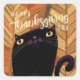 Happy Thanksgiving Black Cat Autumn Fall Square Sticker