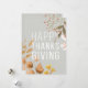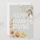 Grey-blue pastel modern clean Card with Watercolor hand-drawn harvest botanicals. With white modern Letters saying: "Happy Thanksgiving". Back with text-template for a personal message and footnote for family or business address.
