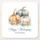 Happy Thanksgiving Blue Orange Gold Pumpkins Square Paper Coaster
