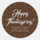 Happy Thanksgiving custom script text and name cute elegant favours Classic Round Stickers.