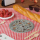 These custom Happy Thanksgiving paper plates feature a Fall harvest scene of colourful pumpkins, cow skulls adorned with roses, acorns and autumn foliage against an elegant sage background. All text is editable.