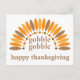 Wish your family and friends a happy Thanksgiving this year with this cute typography gobble gobble turkey feathers postcard!