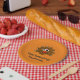 Orange or custom colour background. Fun festive design for family reunions and gatherings with friends.