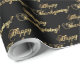 Happy Thanksgiving Elegant Faux Gold Foil Script Golden Text Pattern on Black Background Thanksgiving Day Gift Wrapping Paper, you can add name or text