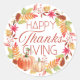 Happy Thanksgiving Floral Fall Wreath Classic Round Sticker
