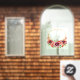 Burgundy and pink flowers among orange and green leaves and any wording - we show Happy Thanksgiving - are featured on this window cling - Choose the SIZE and if you want the cling to be on the **front or back.