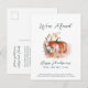 Happy Thanksgiving from our New Home Moving Announcement Postcard... The front of our holiday season change of address card features the script announcement "We've Moved" with a pastel orange and pink pumpkin floral bouquet just beneath. Additional text on front of the card reads: "Happy Thanksgiving from our new home" above your name and new address. On the back is all the information your family and friends will need to stay in touch. All text on front and back of the card can be revised very easily on the Personalisation template.