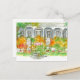 Happy Thanksgiving postcard greetings featuring the porch of a lovely Victorian home with a variety of plants in autumn colours and a gate sign that says "give thanks" hand painted with watercolor. Wonderful way to send holiday greetings to new home buyers and potential clients! Add your business name, logo, QR code, and other details to the back.