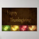 Modern minimalist Happy Thanksgiving illustration featuring an abstract and trendy vintage style rustic background with colorful grunge autumn leaf shapes in green, yellow, red and brown with greeting.