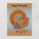Happy Thanksgiving Male Turkey Fanned Tail Orange Postcard
