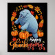 Happy Thanksgiving Manatee In Leaves Pumpkins Flor Poster