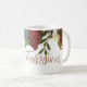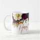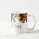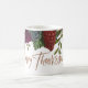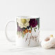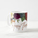 Trendy modern coffee Thanksgiving mug featuring flowers with dried leaves and foliage, grapes, and a chic faux gold typography Happy Thanksgiving script