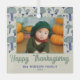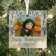 Happy Thanksgiving Mushroom Fall Photo Glass Ornament. A lovely mushroom pattern in fall colours. Personalise the ornament with your photo, family name and year. A lovely personalised Thanksgiving holiday keepsake.
