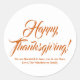Happy Thanksgiving orange white custom script text Classic Round Sticker