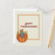 Happy Thanksgiving. Illustration Pumpkin with cat, flowers and leafs